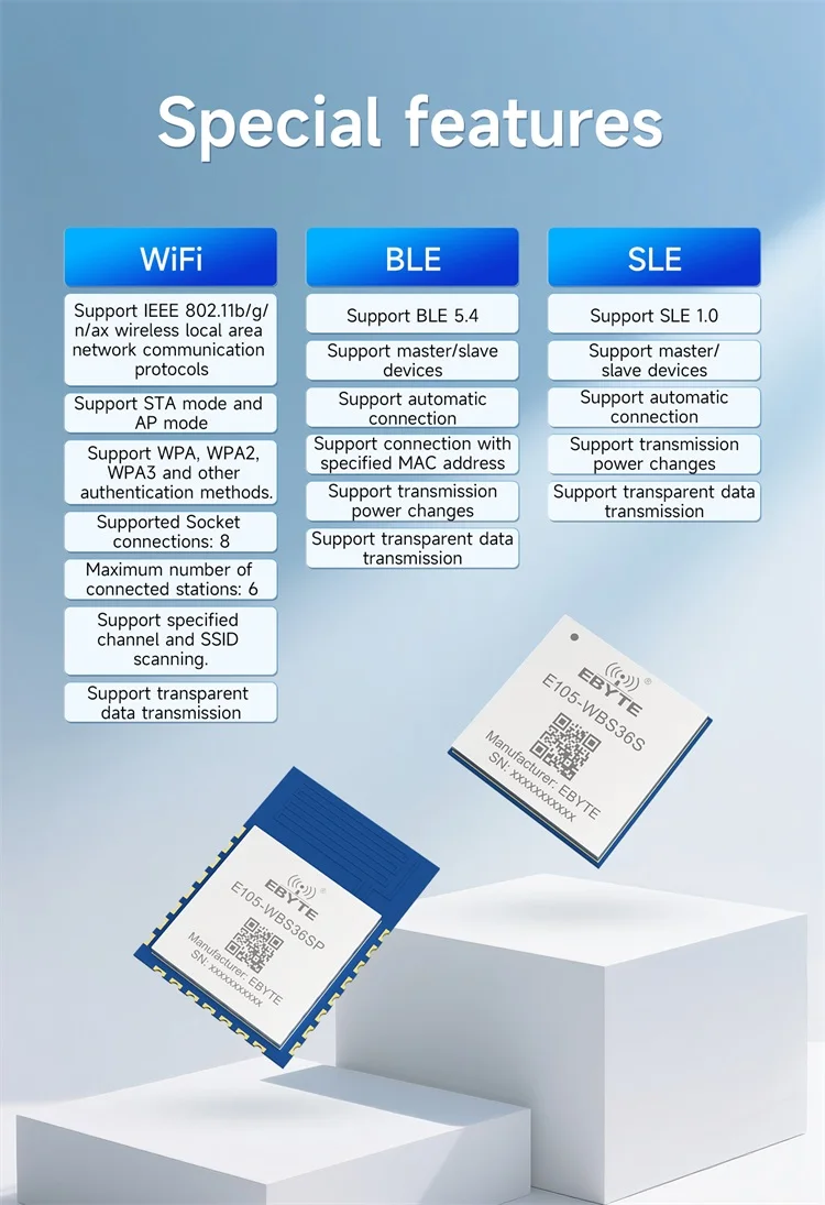 0.1$ Free Sample(Limit 2 pcs per person of all sample models) Ebyte E105-WBS36S Series NearLink Combo Module SLE1.0/WiFi6/BLE5.4 Transparent Transmission Strong Anti-interference 20dBm